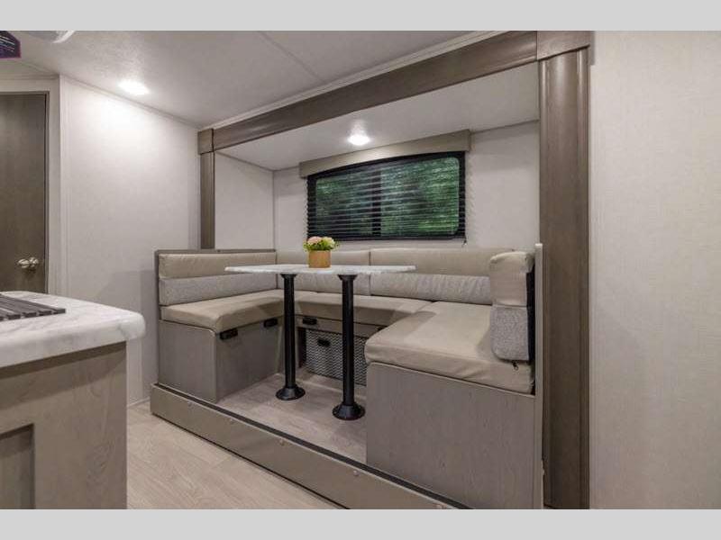 Each model is constructed with a BAL NXG frame for durability, and an aerodynamic front profile for better fuel efficiency. You'll appreciate the electric stabilizer jacks for easy set up plus a power awning with LED lights for an outdoor living space. Inside, there is drop edge thermofoil countertops and USB ports to keep your electronics charged, and you'll stay comfortable thanks to the 30K BTU furnace and 13.5K BTU A/C!