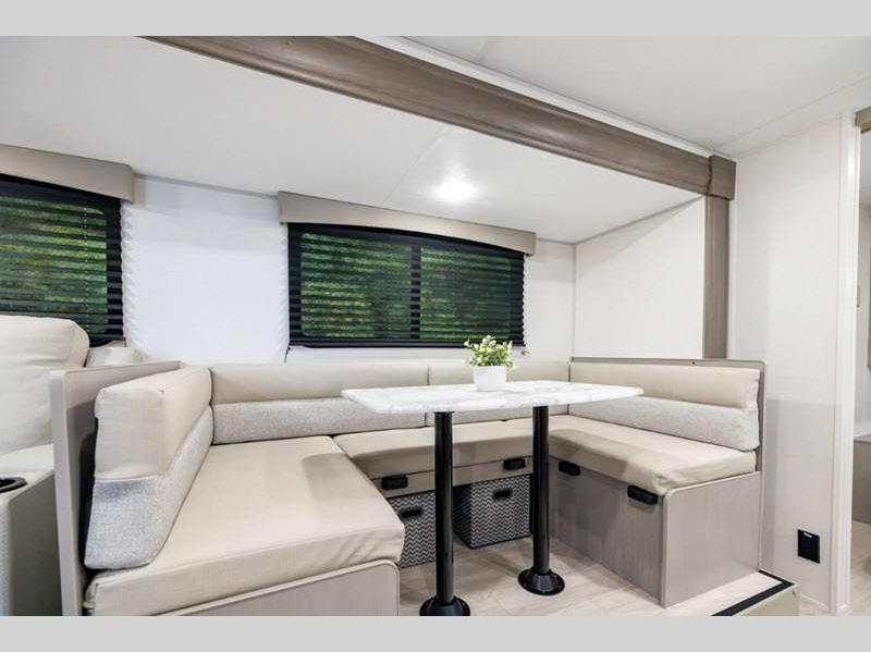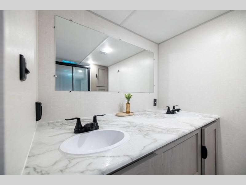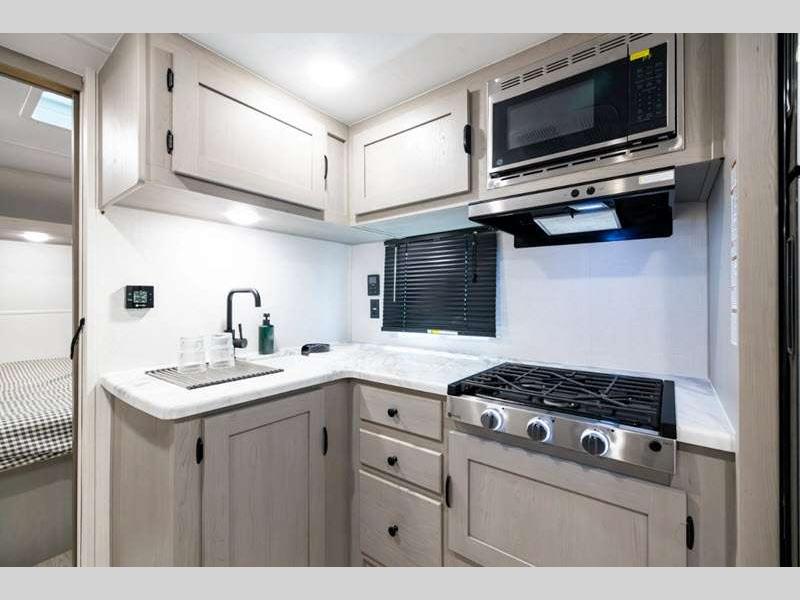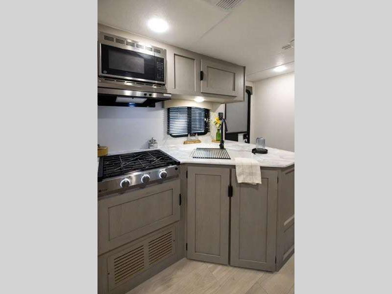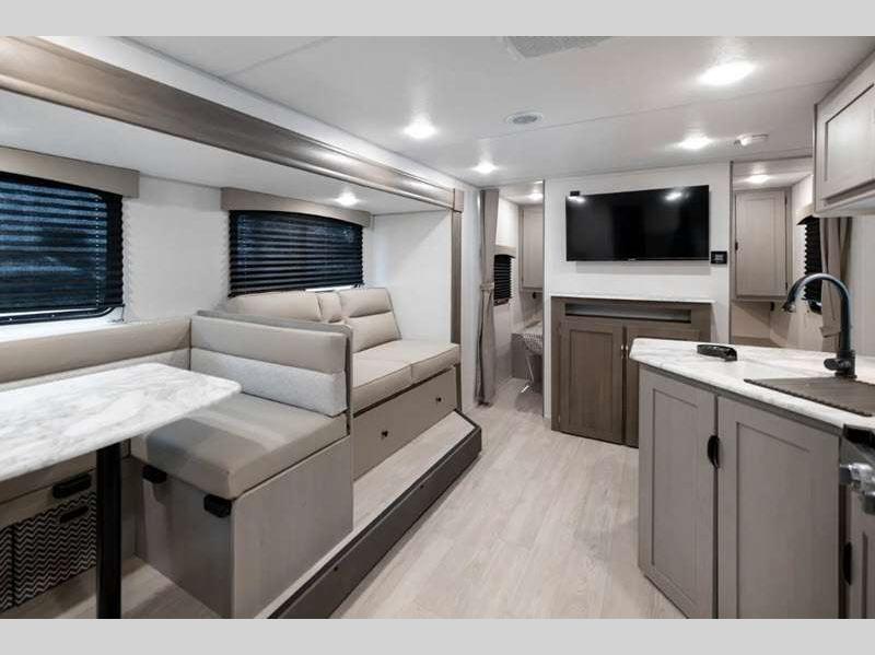 Sleeps 5 Slides 1 Length 30 ft 9 in Ext Width 8 ft Ext Height 10 ft Hitch Weight 740 lbs GVWR 7740 lbs Dry Weight 5865 lbs Cargo Capacity 1872 lbs Fresh Water Capacity 40 gals Grey Water Capacity 69 gals Black Water Capacity 32 gals Furnace BTU 30000 btu Available Beds RV Queen Refrigerator Type 12 Volt Refrigerator Size 10 cu ft Cooktop Burners 3 Shower Size 36" x 30" Number of Awnings 1 Water Heater Type Tankless On Demand AC BTU 13500 btu TV Info LR Smart TV Awning Info 21' Power with LED Light Strip & Adj. Legs Axle Count 2 Washer/Dryer Available Yes Shower Type Tub/Shower Combo Similar Floorplans