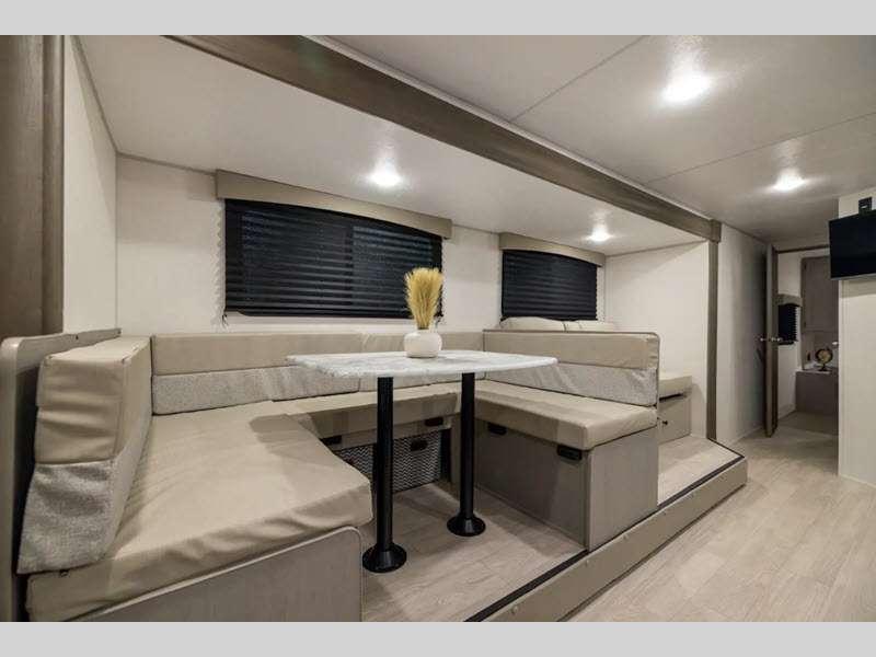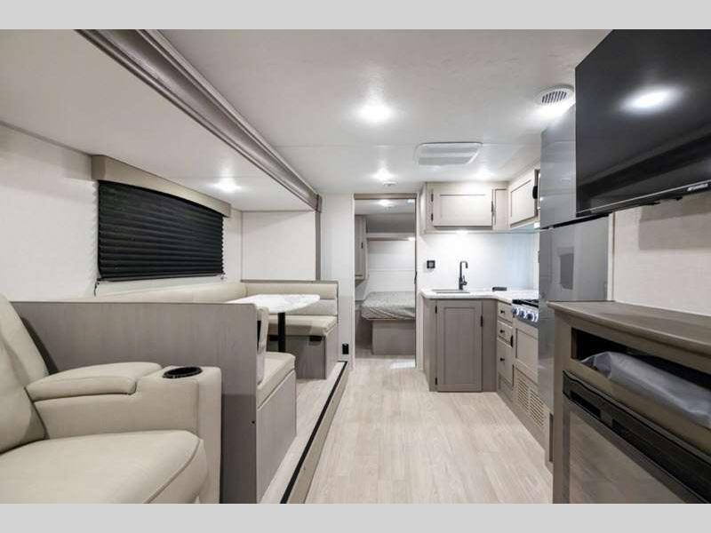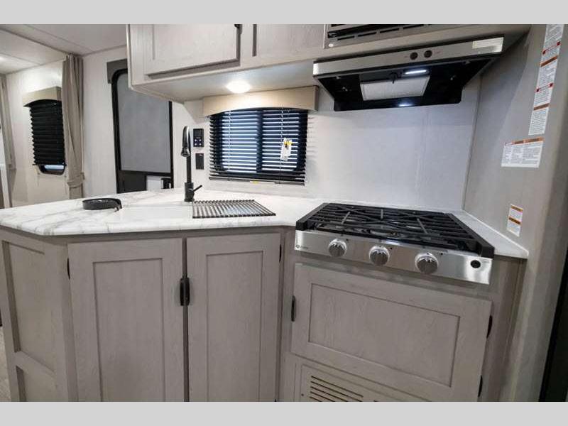 Sleeps 9 Slides 1 Furnace BTU 30000 btu Number Of Bunks 2 Available Beds RV Queen Refrigerator Type 12 Volt Refrigerator Size 10 cu ft Cooktop Burners 3 Shower Size 24" x 36" Number of Awnings 1 Water Heater Type Tankless On Demand AC BTU 13500 btu TV Info LR Smart TV Awning Info 21' Power with LED Light Strip & Adj. Legs Axle Count 2 Shower Type Tub/Shower Combo Similar Floorplans