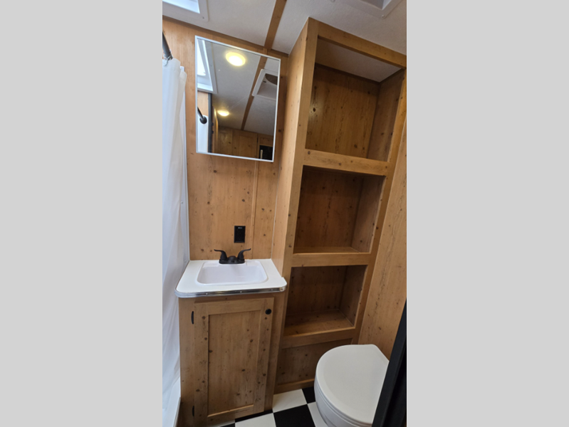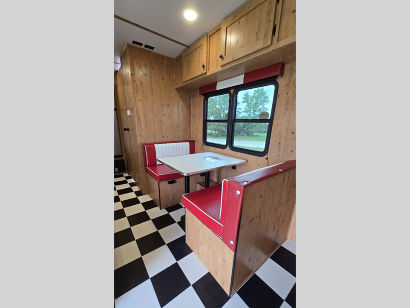 Sunset Park RV Retro travel trailer R136 highlights: Rear Bathroom Entertainment ... more about Retro R136