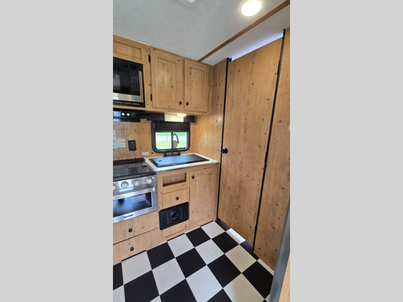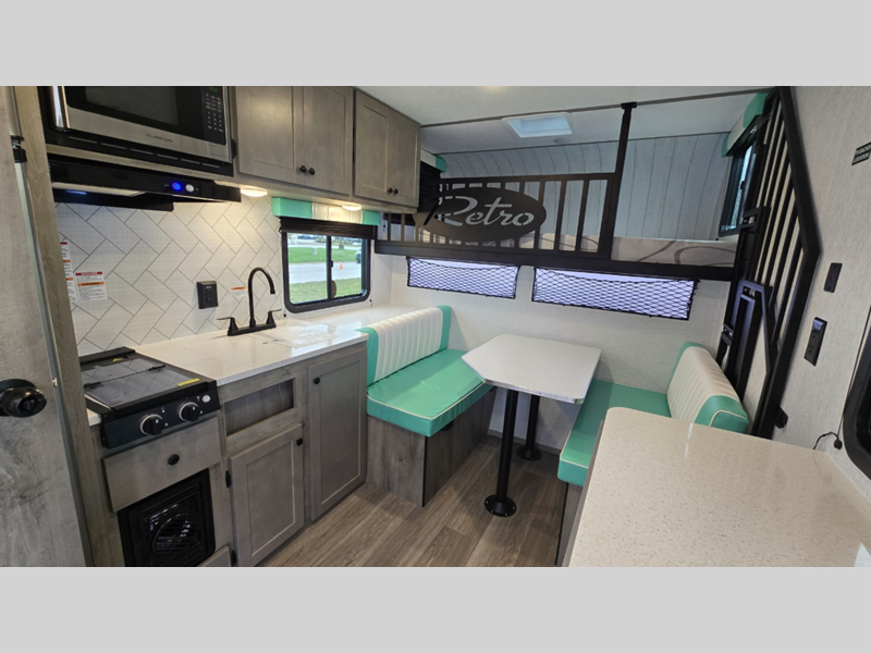 Discover the perfect blend of retro charm and modern comfort with Retro travel trailers. Built to last with marine-grade floor decking, 16" O.C. construction, and a one-piece PVC roof membrane, these trailers deliver strength and style on every journey. Inside, enjoy chrome trim countertops, premium checker board flooring, and all the essential appliances. Travel-ready features like EZ lube axles with electric brakes, power tongue jack, stabilizer jacks, and radial tires make towing easy and reliable. These trailers combine timeless design with modern innovation for travelers who expect more from every trip.